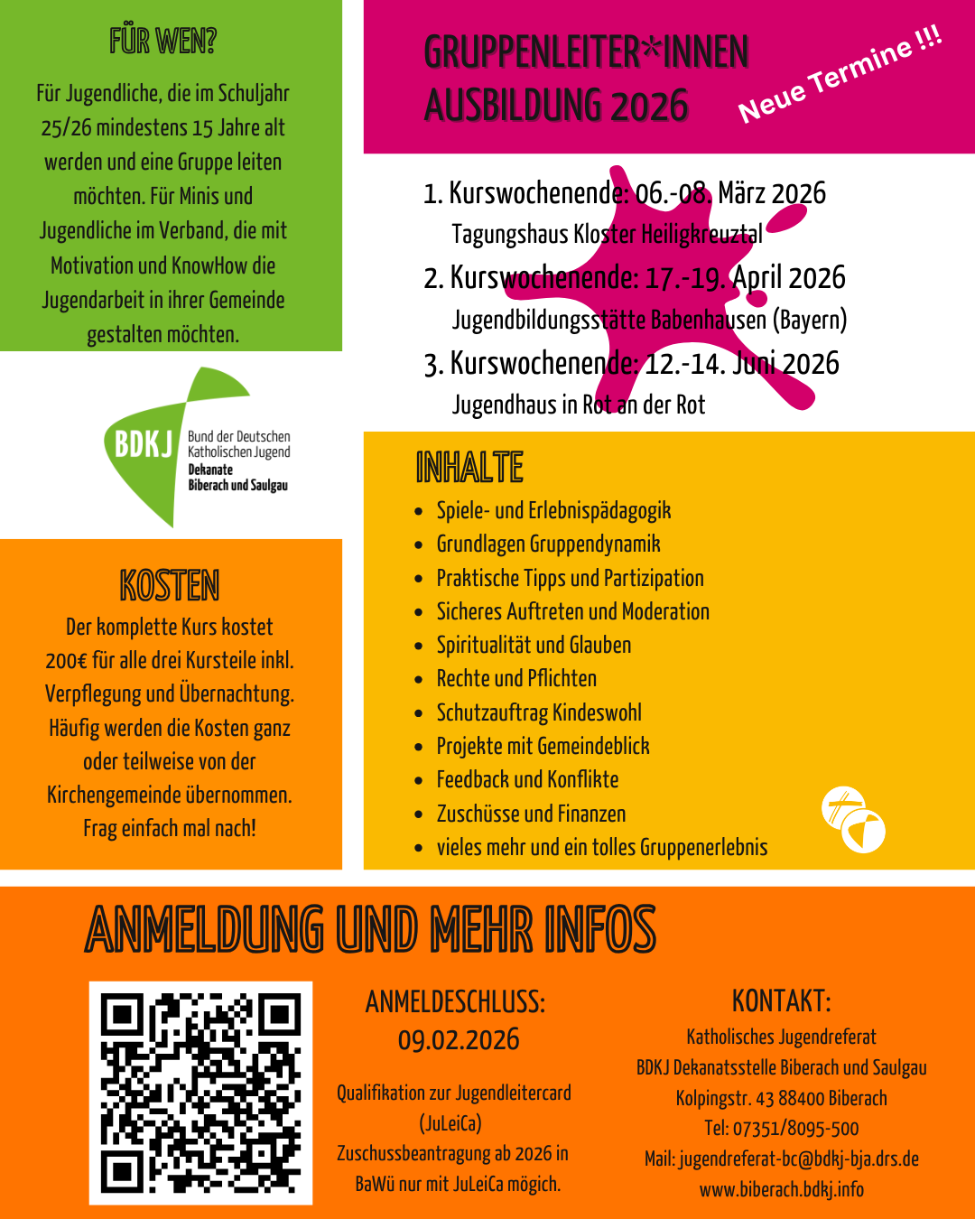 OBACHT: Das Formular muss uns unterschrieben bis 18. Februar 2026 vorliegen. Erst dann seid ihr offiziell angemeldet und könnt am Kurs teilnehmen. Und wir können die richtigen Zahlen an das Tagungshaus schicken.