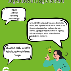 Sehr herzlich möchten das Jugendreferat und die BDKJ Dekanatsleitung Saulgau euch am 26. Januar 2026 ab 19:30 Uhr ins katholische Gemeindehaus Saulgau zum Jugendbeauftragtenabend einladen.